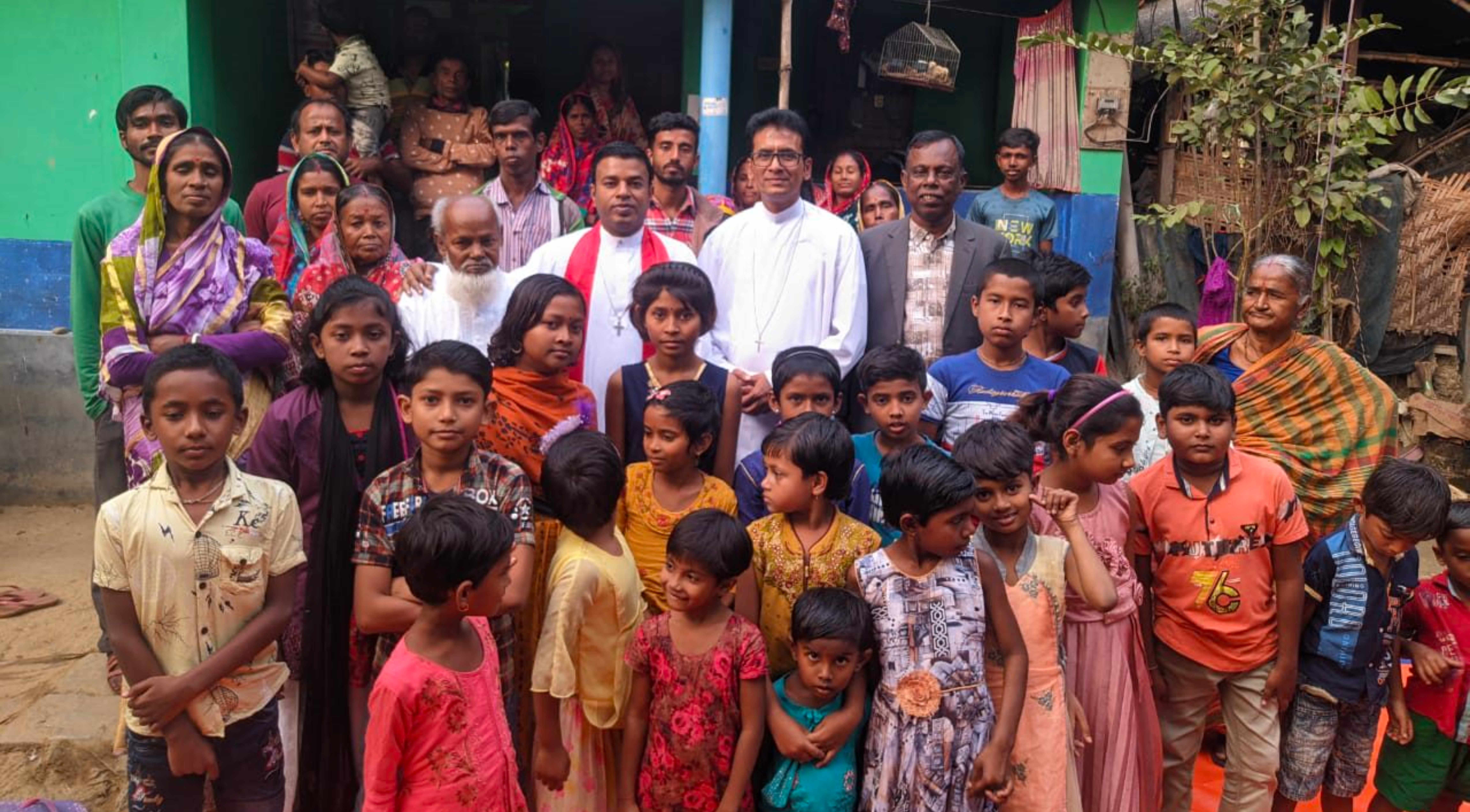 Em junho passado, oramos por uma congregação cristã de origem hindu na diocese de Barishal, Bangladesh. Um terreno foi comprado e preparado e eles estão orando por uma igreja e uma casa para o Catequista. Ore pela provisão do Senhor. (Foto: atualmente eles se encontram no quintal de uma família).